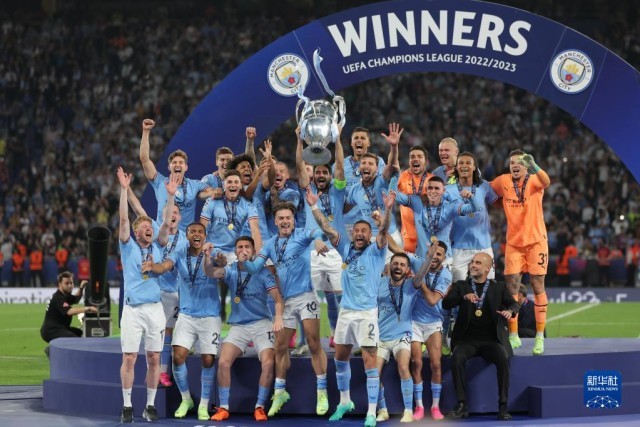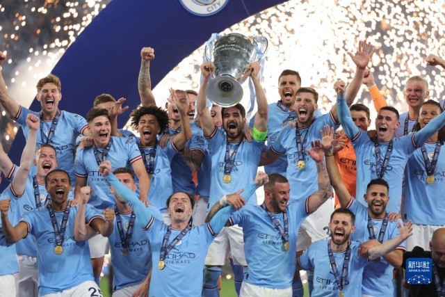 新华社伊斯坦布尔6月10日电 10日在土耳其伊斯坦布尔进行的2022-2023赛季欧冠联赛决赛中,曼城凭借罗德里下半场的进球1:0击败国际米兰,队史首次夺得欧冠冠军,同时加冕本赛季欧冠、英超联赛和英格兰足总杯“三冠王”。
