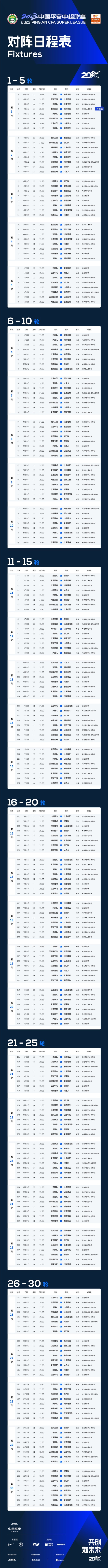 2023中国平安中超联赛比赛公告