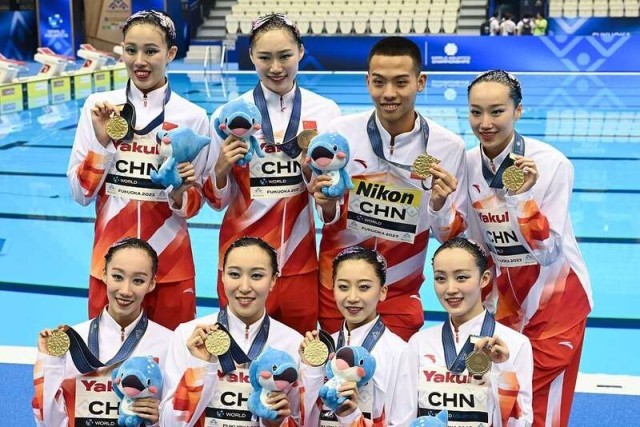 中国青年报客户端讯(中青报·中青网记者 慈鑫)北京时间7月17日晚,随着中国花样游泳队在2023年福冈游泳世锦赛花样游泳集体技巧自选决赛中夺冠,中国队在当天再次夺得3枚金牌。中国队获得的另外两金来自跳水。