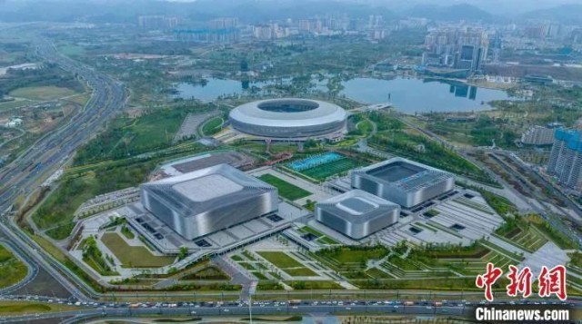 远眺东安湖体育公园和“一场三馆”。 刘忠俊 摄