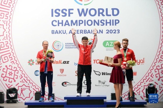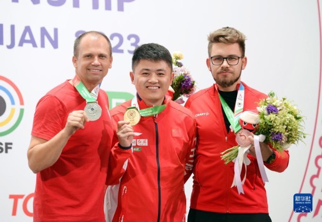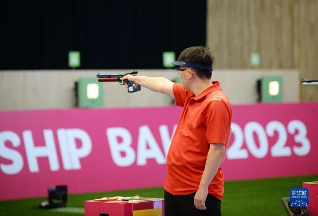 当日,在阿塞拜疆巴库举行的国际射击联合会2023年射击世锦赛男子10米气手枪决赛中,中国选手张博文以244.3环的总成绩获得冠军。