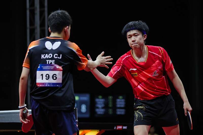 中国选手王楚钦(右)在战胜中国台北选手高承睿后与对手握手致意。视觉中国供图