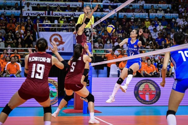 在主场观众的助威声中,泰国队以25:21拿下首局,次局一度以24:18领先。不过中国队连续得分将比分追成24平,随即以27:25将大比分扳平。