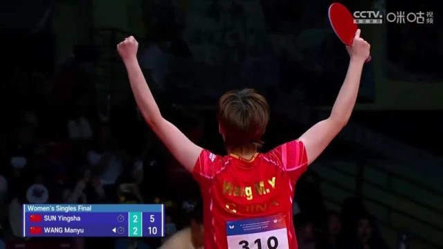 9月9日,正在韩国平昌举行的2023乒乓球亚锦赛展开多项决赛争夺。刚刚结束的女单决赛,王曼昱以3-2战胜队友孙颖莎,首次摘金,国乒包揽冠亚军。此前,中国队陈幸同和王艺迪也顺利闯入女单四强,恭喜中国队!