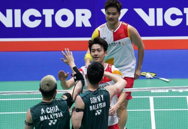 男双决赛是一场“提前约好”的较量。中国队组合梁伟铿/王昶与马来西亚组合谢定峰/苏伟译近来经常在各项赛事中交流,还相约会师决赛。世锦赛未能如愿后,双方终于在中国公开赛的决赛场上相遇。