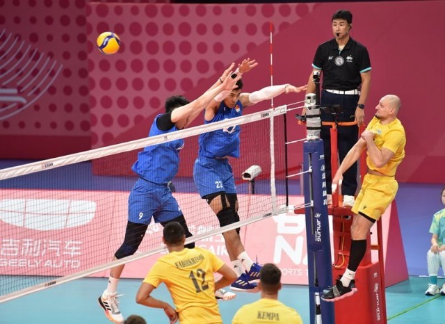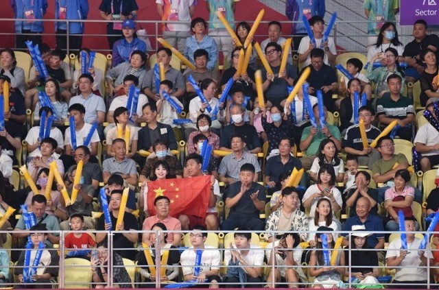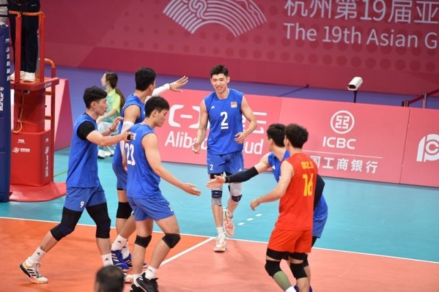 中国青年报客户端杭州9月21日电(中青报·中青网记者慈鑫文并摄)中国男排今晚在杭州亚运会男排预赛A组的第二轮比赛中以3:0(25:20、25:23、25:20)击败哈萨克斯坦队,从而以两战全胜、小组头名的身份晋级12强。