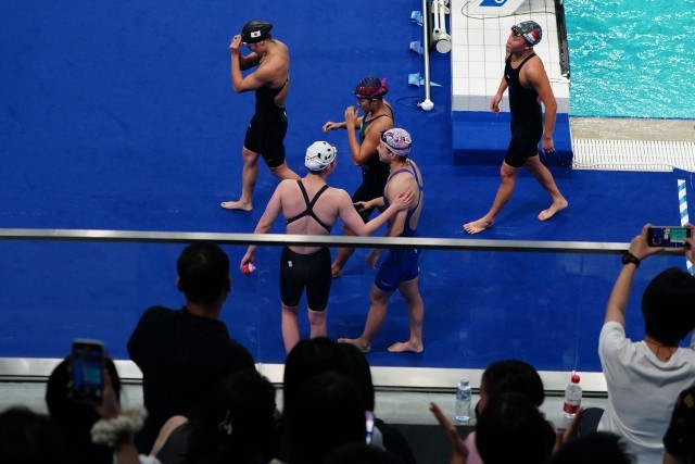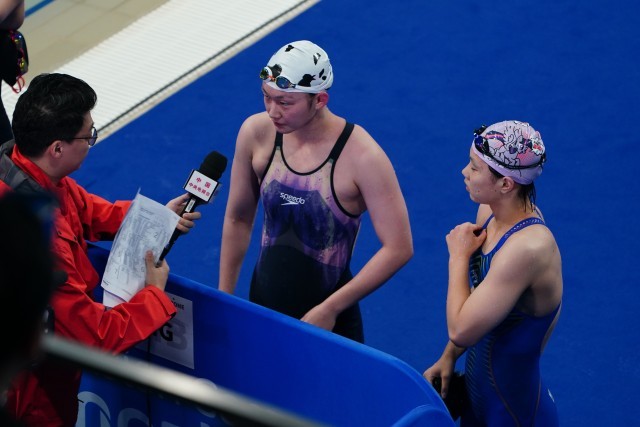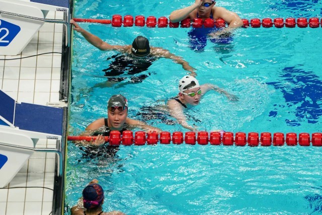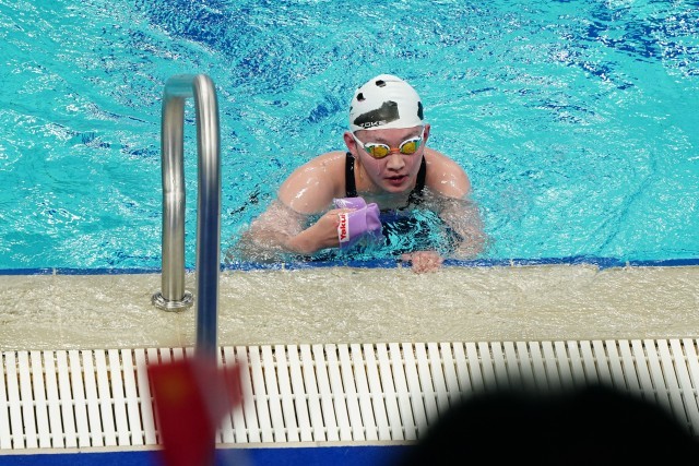 在今晚刚刚结束的杭州亚运会女子1500米自由泳决赛上,中国选手李冰洁以打破亚运会纪录的成绩夺冠。今晚的比赛中国游泳队截止目前已连夺三金,且均打破纪录(亚洲纪录或亚运会纪录。(中青报·中青网记者慈鑫文,赵迪摄)