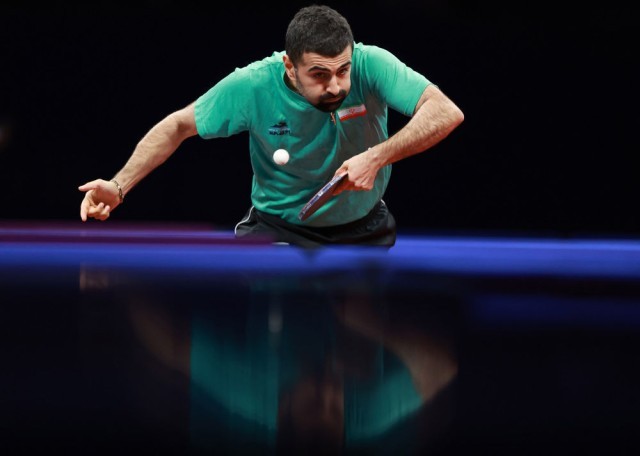24日,诺沙迪在乒乓球男团四分之一决赛中战胜日本名将户上隼辅