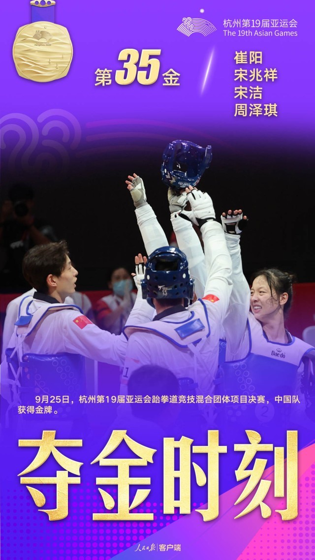 今天下午,杭州亚运会跆拳道男子+80公斤级决赛中,中国队选手宋兆祥以2∶1击败伊朗队选手阿里安·萨利米获得冠军。至此,本届亚运会跆拳道项目的争夺全部结束,中国跆拳道队收获了5金1银2铜的佳绩,创造了亚运会上的历史最好成绩。