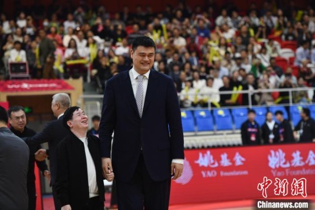 17日晚,姚明现身在成都举行的WCBA联赛揭幕战。记者张浪摄