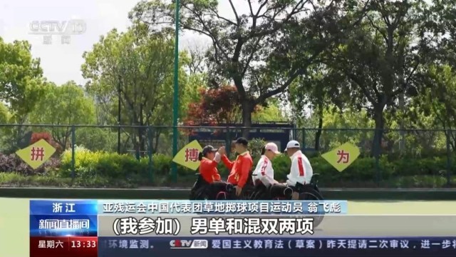 亚残运会中国代表团草地掷球项目运动员 翁飞彪:我参加男单和混双两项。自己的目标,能够为国争光,然后夺得金牌。