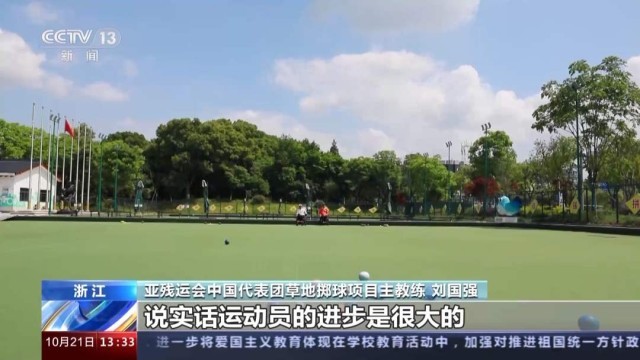 亚残运会中国代表团草地掷球项目主教练 刘国强:通过近三年的训练,说实话运动员的进步是很大的,我想一定能取得好成绩。