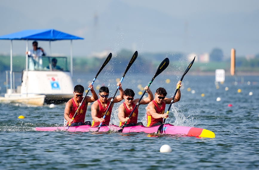 宁波市代表队以陈作添、丁圣开、程国豪、何俊扬组成的冠军队伍,与成都市、青岛市代表队并驾齐驱,展开激烈的角逐,在最后找准机会以1分24秒010的成绩夺得男子四人皮艇500米决赛冠军。