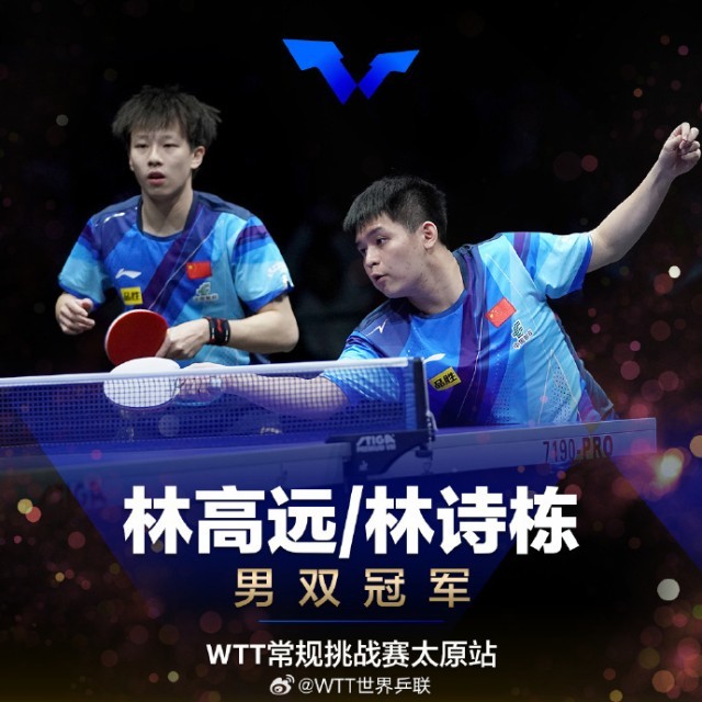 男双决赛中,林高远/林诗栋3-2王楚钦/梁靖崑夺得冠军。此前比赛中,陈幸同/钱天一、梁靖崑、王曼昱和林诗栋/蒯曼已分获女双、男单、女单和混双冠军。