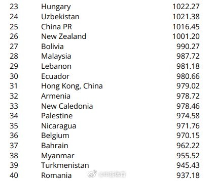 女足方面,巴西队位列榜首。根据排名显示,中国队排名第25位。其他亚洲球队方面,泰国队排名第6,伊朗队排名第8,日本队排名第9,越南排名第13位,印尼排名第14位。