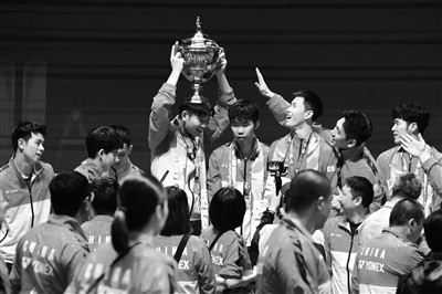 中国队重夺汤姆斯杯。本报记者 鹿麟摄