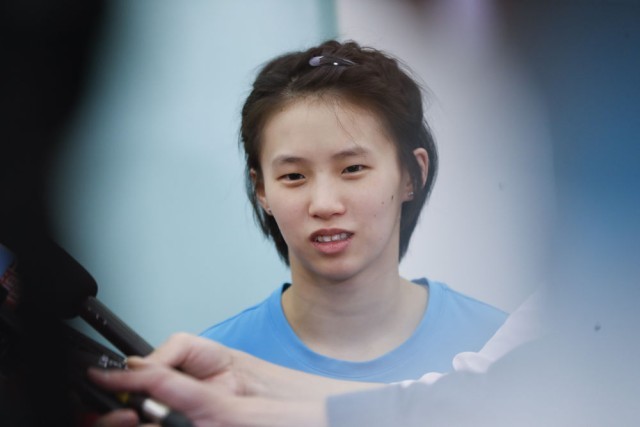5月7日,中国跳水队队员陈芋汐在训练后接受采访。新华社记者 雒圆 摄