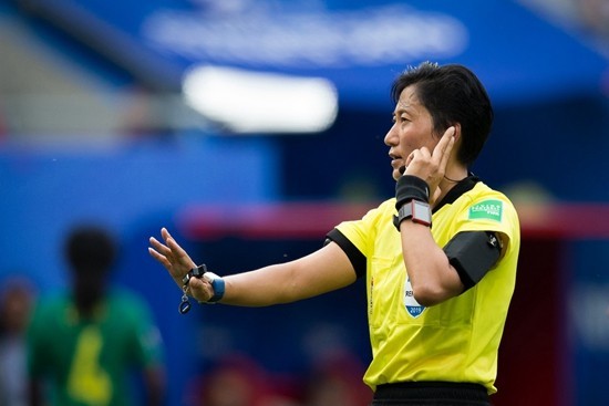 秦亮在2019法国女足世界杯1/8决赛执裁。视觉中国供图