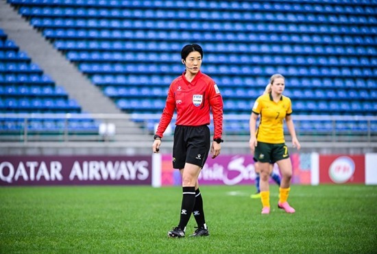 董方雨在2024亚足联U20女子足球亚洲杯中执裁。董方雨供图