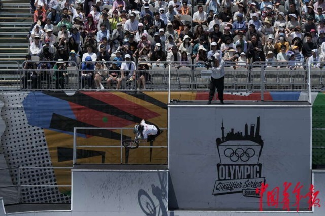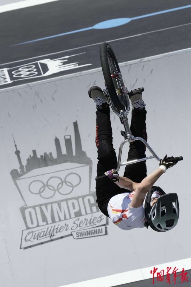5月18日上午,上海,奥运会资格系列赛上海站女子自由式小轮车决赛, 中国选手邓雅文在比赛中,她获得决赛的第三名。中青报·中青网记者 李隽辉/摄