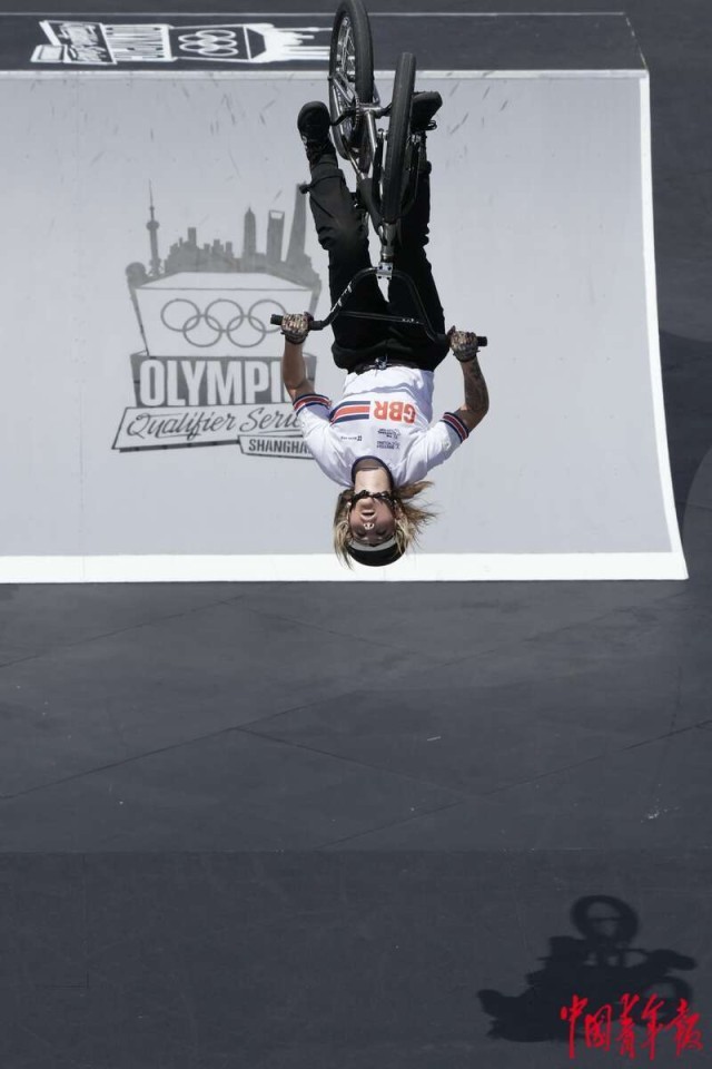 5月18日上午,上海,奥运会资格系列赛上海站女子自由式小轮车决赛,英国选手S. PARDOE在比赛中。中青报·中青网记者 李隽辉/摄