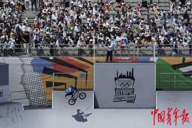 5月18日上午,上海,奥运会资格系列赛上海站女子自由式小轮车决赛,中国选手孙佳琪在比赛中。她获得决赛第二名。中青报·中青网记者 李隽辉/摄