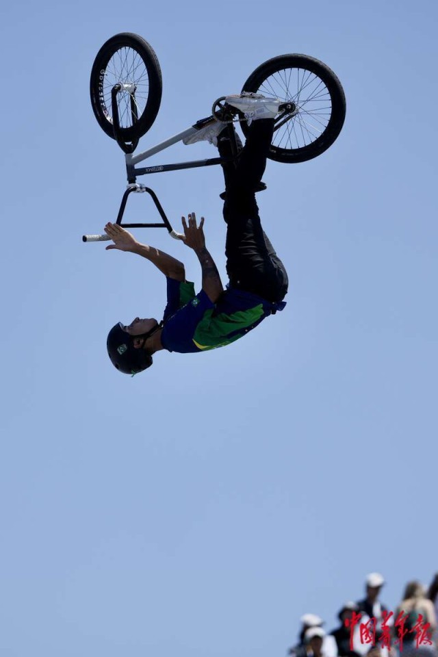 5月18日,上海,奥运会资格系列赛上海站男子自由式小轮车决赛,巴西选手G. BATISTA de OLI在比赛中。中青报·中青网记者 李隽辉/摄