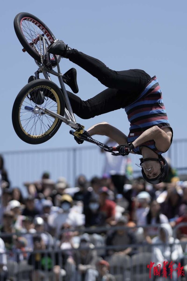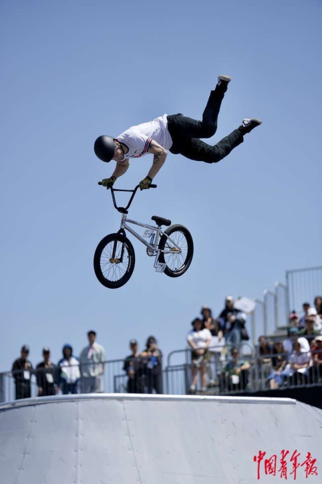 5月18日,上海,奥运会资格系列赛上海站男子自由式小轮车决赛,委内瑞拉选手D. DHERS在比赛中。他曾获得5枚X-Games金牌、2020年东京奥运会银牌,目前既是运动员,也是执教中国队的外教。中青报·中青网记者 李隽辉/摄