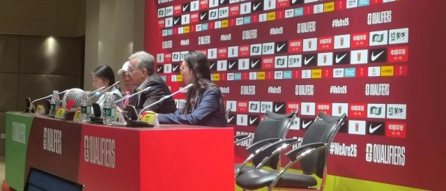 6月6日晚,国足主场未能取胜,主教练伊万科维奇(右二)赛后情绪低落。中青报·中青网记者 郭剑/摄