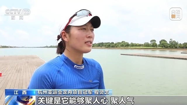 从技术到精神,人们对龙舟赛的热爱,远远超过了比赛本身。如今,龙舟运动正在全球范围广泛开展。国际皮划艇联合会主席近日也表示,中华龙舟赛将成为巴黎奥运会表演项目。而登上奥运会赛场,这也是江西姑娘程灵芝的梦想。去年10月,程灵芝和队友在杭州亚运会上夺得200米、500米和1000米龙舟赛的冠军。今年端午前夕,很多龙舟队找到她,让她辅导划龙舟技巧。