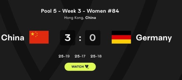 第二局,中国女排在配合上不够默契,不过比分一直领先对手。局中段,德国队连续追分,中国女排请求暂停。暂停过后,朱婷和李盈莹进攻不断得手,中国队迎来得分潮,25:17拿下第二局。