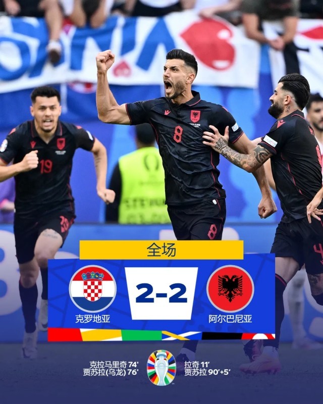 补时第5分钟,孤注一掷的阿尔巴尼亚队组织最后的攻势,苏塔洛又解围失误,贾苏拉中路射门得手完成救赎,将最终比分定格在2:2。