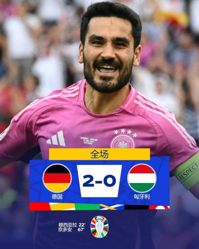 最终德国队2:0取胜。此战过后,已积6分的东道主成为本届欧洲杯第一支晋级16强的球队。