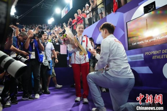 2016年里约奥运会,跳水女子三米板的颁奖典礼后,跳水运动员秦凯向何姿求婚的场景曾感动全球无数观众。巴黎奥运会上,浪漫一刻再度上演。