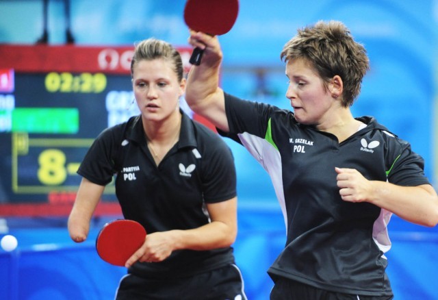 2008年9月15日,在北京残奥会乒乓球女子团体F6-10金牌争夺赛中,波兰队以1:3负于中国队获得亚军。图为波兰队选手帕尔蒂卡/热拉克(右)在比赛中。新华社记者 徐家军 摄