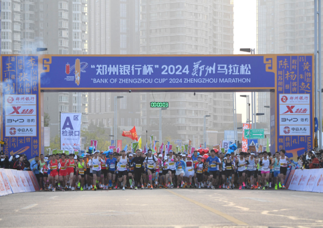“砰、砰、砰!”上午7时30分,随着发令枪响,2024郑州马拉松赛在郑东新区CBD鸣枪开赛。近四万名跑者如离弦之箭般冲出起点,瞬间点燃了整个赛场的激情。