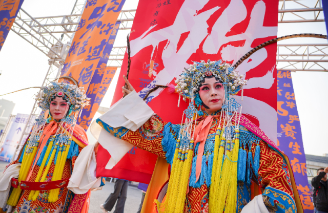 郑州马拉松嘉年华上的豫剧表演。(新华社发)