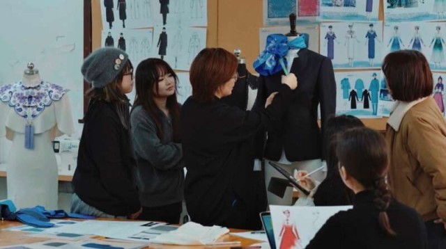 东华大学服装与艺术设计学院师生团队讨论结构细节。东华大学供图