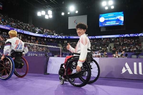 00后轮椅羽毛球选手屈子墨在巴黎残奥会夺得两枚金牌,成功卫冕。受访者供图