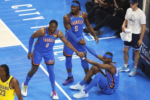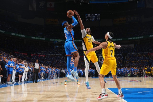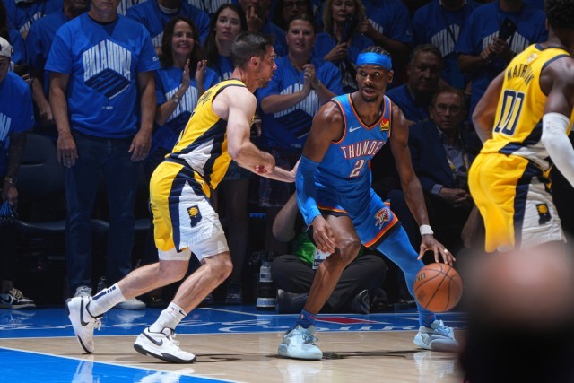 如果说,常规赛的个人高光数据可能受到赛季长度包括对手防守强度等各种客观因素的影响;那么,在季后赛甚至总决赛舞台这样高强度对抗下的抢眼数据,足以证明亚历山大的能力——整个季后赛,亚历山大能够在平均37分钟里,得到30分、5.4个篮板和6.3次助攻,并且有1.7个抢断,各项数据都保持在自己整个赛季的平均水平。