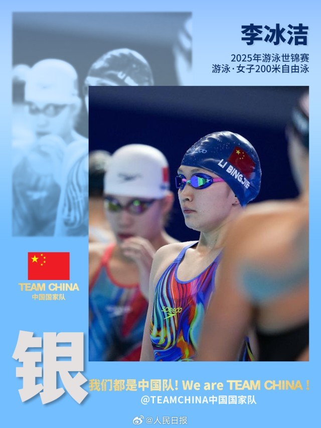 游泳世锦赛,李冰洁已拿下两块银牌