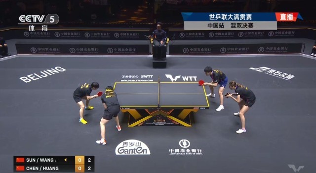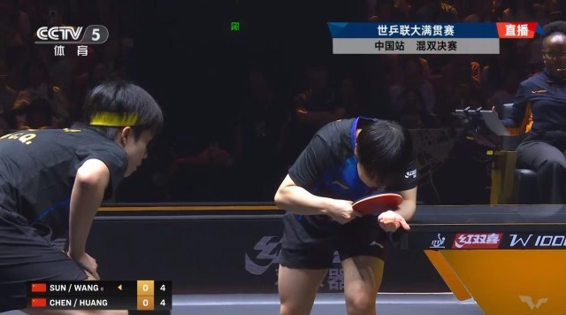 第二局比赛中,王楚钦/孙颖莎11比9黄友政/陈熠再下一局,将比分优势扩大到2-0。