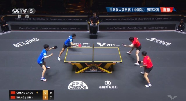 WTT中国大满贯男双决赛上演“中国德比”,王楚钦/林诗栋3-0战胜周启豪/陈俊菘,夺得冠军。中国队包揽男双冠亚军。这也是王楚钦中国大满贯第二冠。