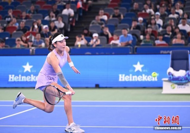 10月6日晚,王欣瑜迎来2025武汉网球公开赛首场比赛。 张璨龙 摄