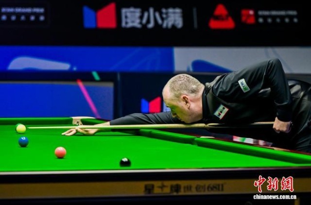 10月13日,斯诺克西安大奖赛收杆,马克·威廉姆斯最终夺冠。图为马克·威廉姆斯在决赛中击球。(赛事组委会供图)