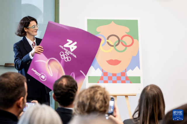 当日,2026年米兰-科尔蒂纳冬奥会和冬残奥会官方标志性海报在米兰三年展艺术中心正式亮相。