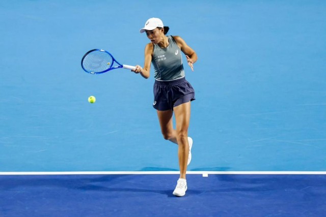 张帅在比赛中。图片来自WTA(女子网球选手协会)