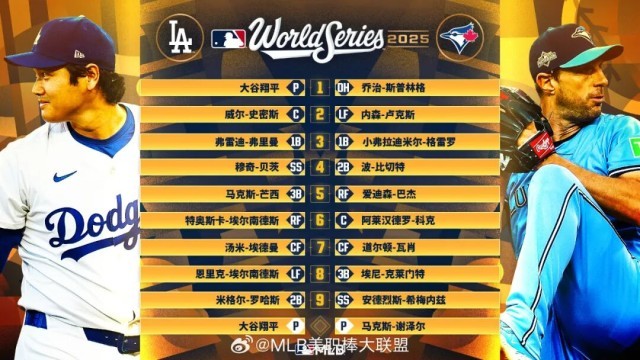 世界大赛采用七场四胜制,多伦多蓝鸟队拥有主场优势。首战蓝鸟凭借在6局下半狂揽9分的“一波流”先声夺人,王牌投手山本由伸在第二战中的出色表现帮助道奇扳回一城。