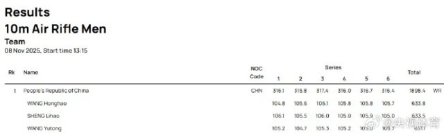 2025年步手枪射击世锦赛昨天在埃及开罗正式开赛。10米气步枪项目,中国队包揽男子、女子团体金牌。其中,由盛李豪、王竑昊、王雨桐组成的中国男队,以1898.4环的成绩刷新10米气步枪男子团体世界纪录并夺冠,将原世界纪录大幅提升4.7环。