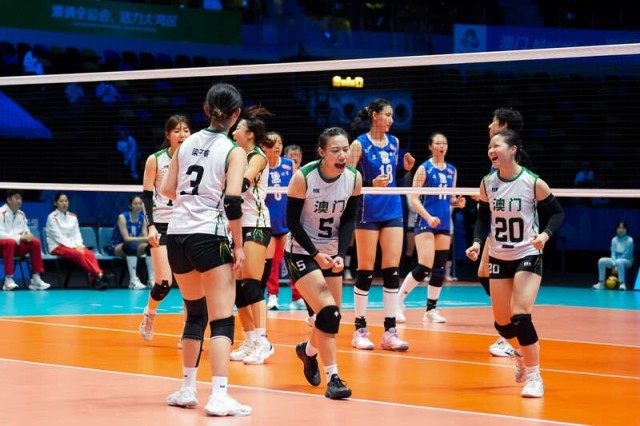 11月8日,澳门,第十五届全运会女子排球成年组小组赛,澳门队与北京队比赛。右一为澳门队队长秦昕贤。赛事组委会供图
